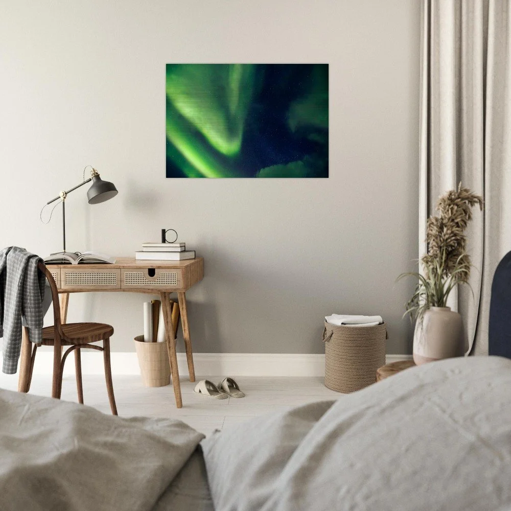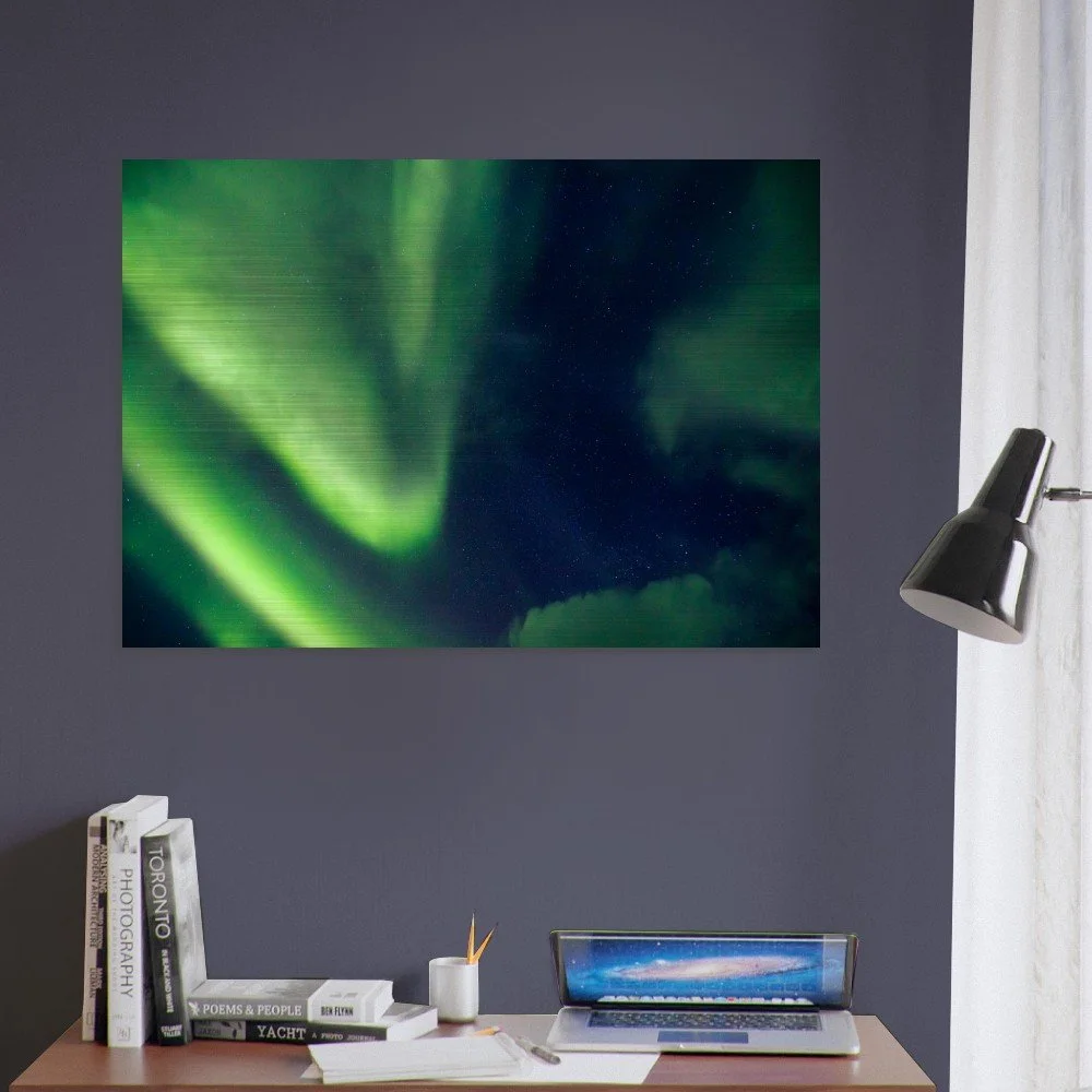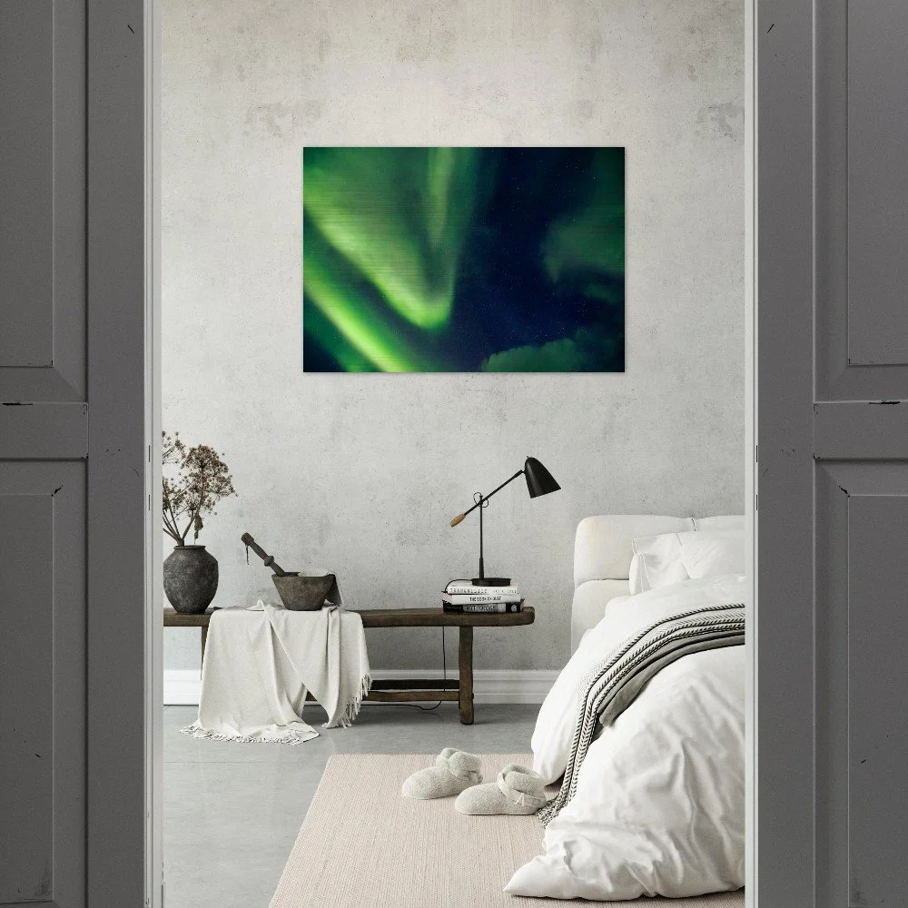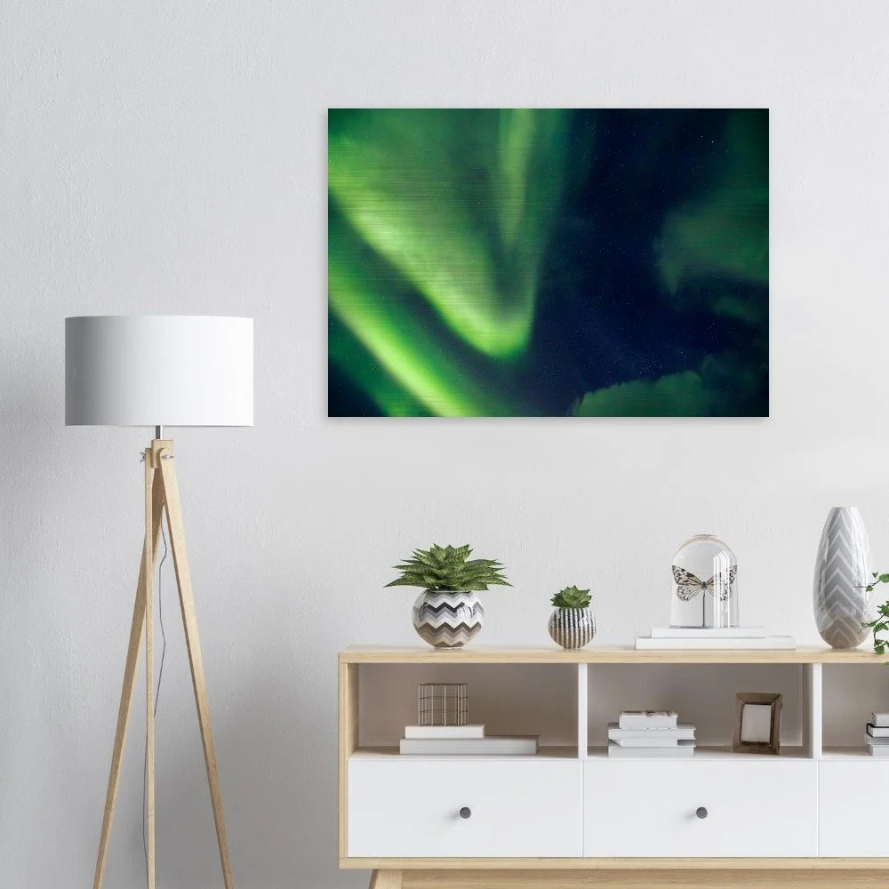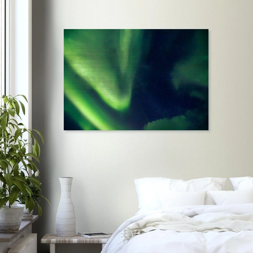 Aurora Borealis Art on Aluminum Print - Stunning Green Night Sky Wall Decor
