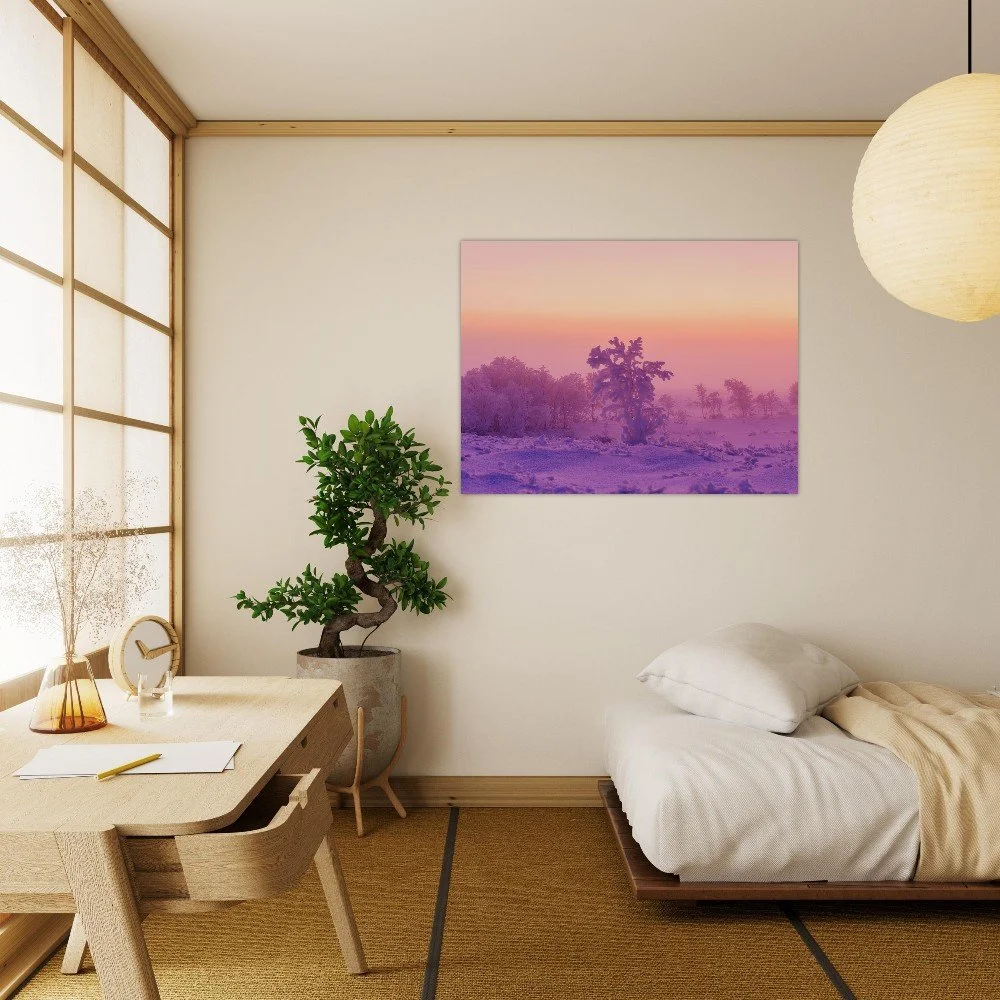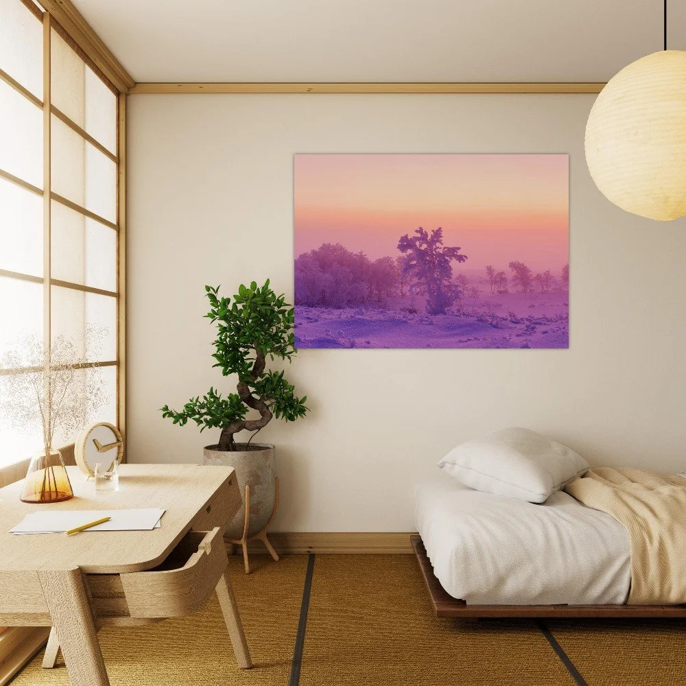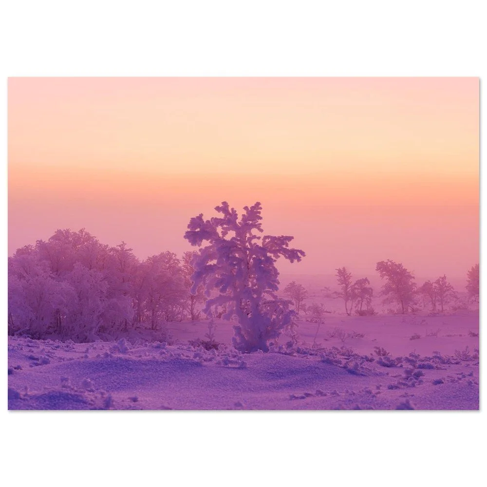 Experience the serene beauty of our Limited Edition Fine Art Print featuring a lone frost-covered tree standing gracefully in a soft winter landscape, bathed in the warm glow of a pastel sunrise. This exquisite artwork is not just a decoration; it tells a story of winter's tranquility and the delicate interplay of light and nature.