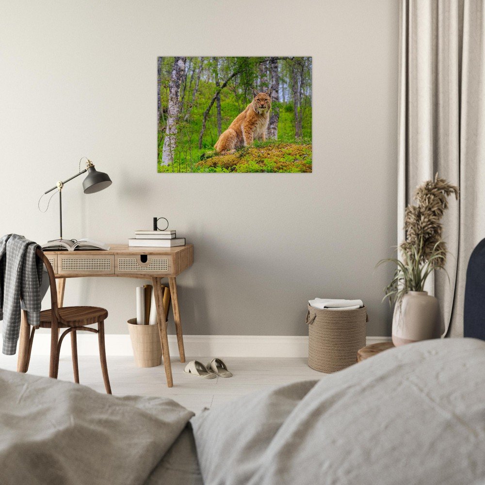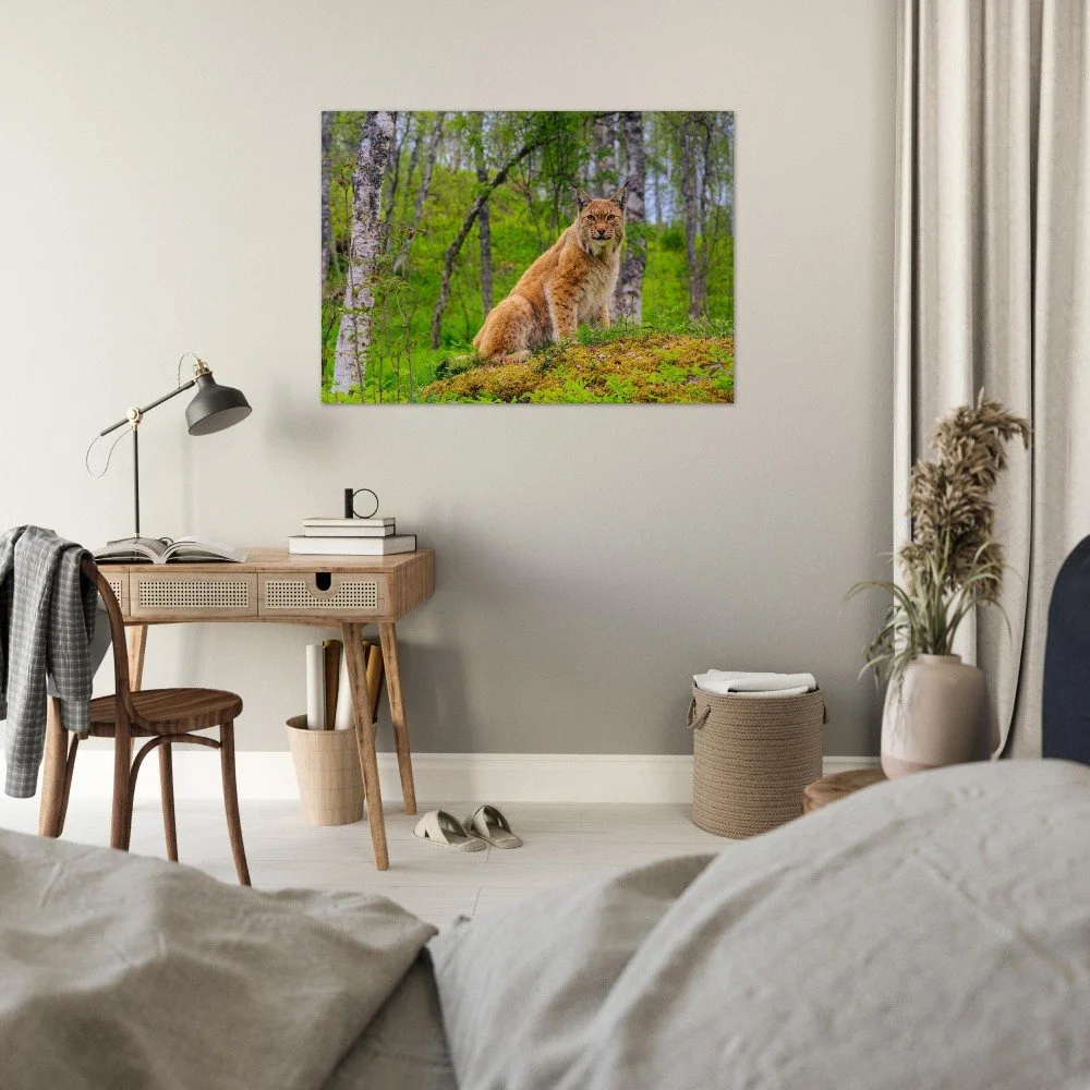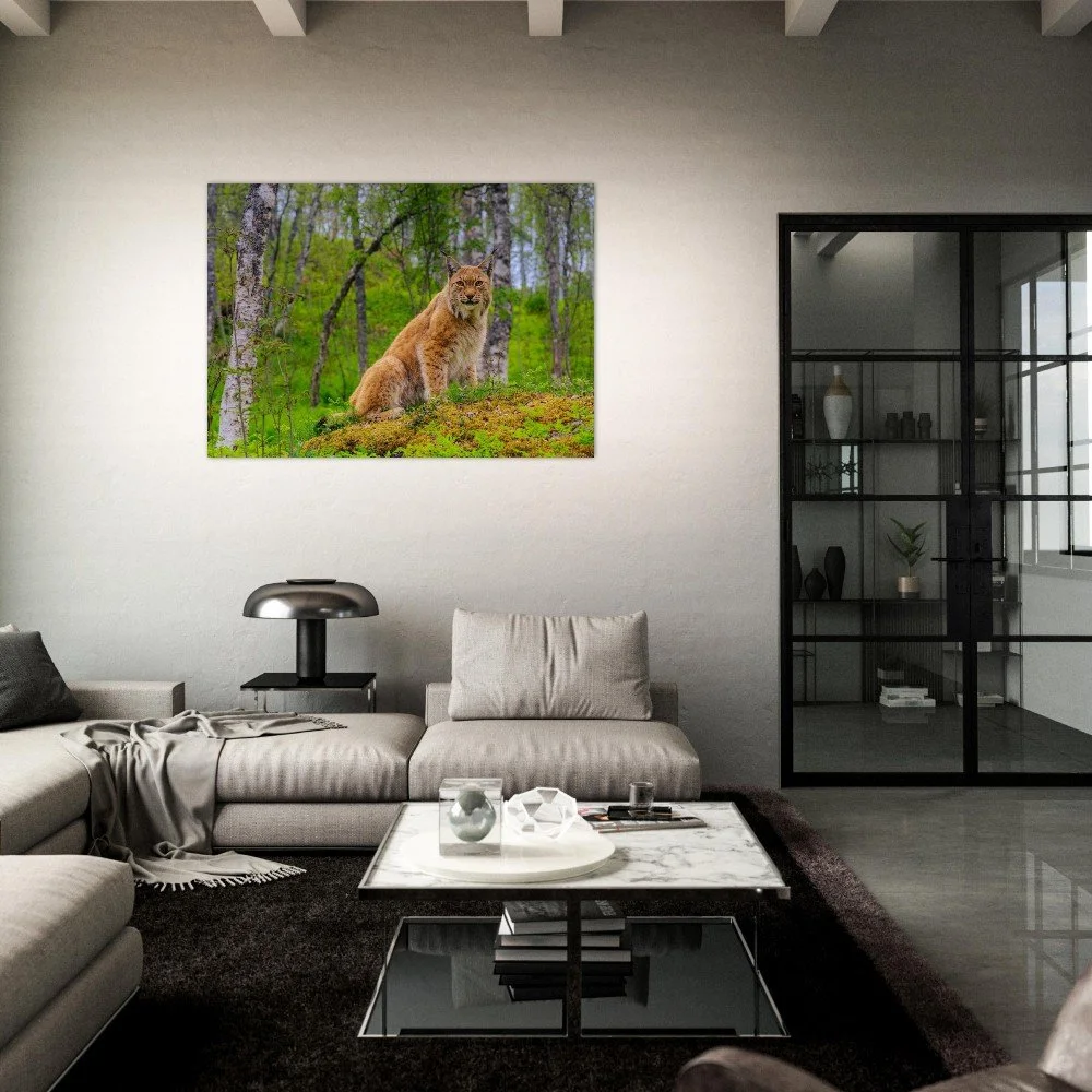 Discover the stunning beauty of our Limited Edition Lynx Art Print. Featuring a majestic lynx sitting alert on a mossy forest floor, this artwork captures the striking contrast of its golden fur against vibrant green foliage and slender birch trees. Perfect for art lovers and interior designers, this print adds a touch of nature’s elegance to any space.