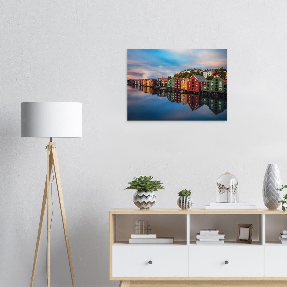 Enhance your home or office decor with this unique piece of art. Order now and immerse yourself in the tranquil vibe of Trondheim every day!