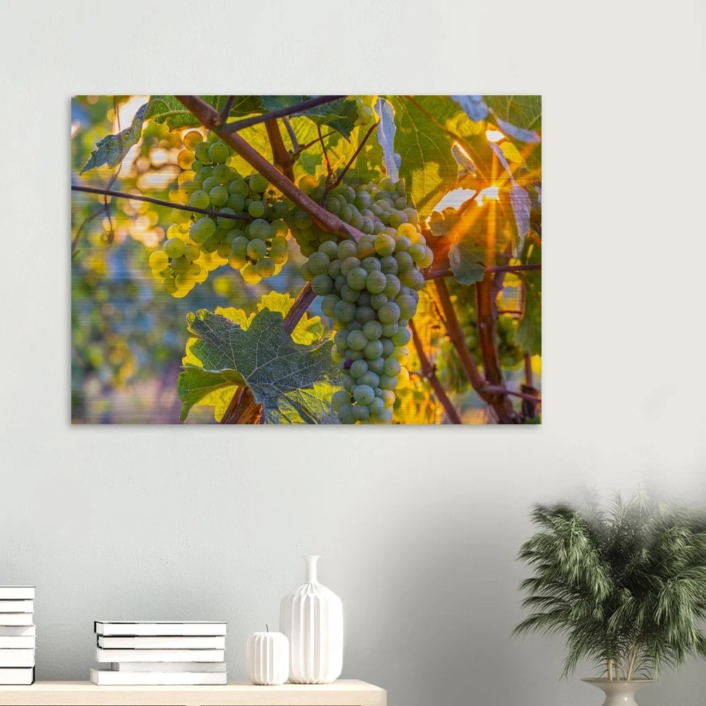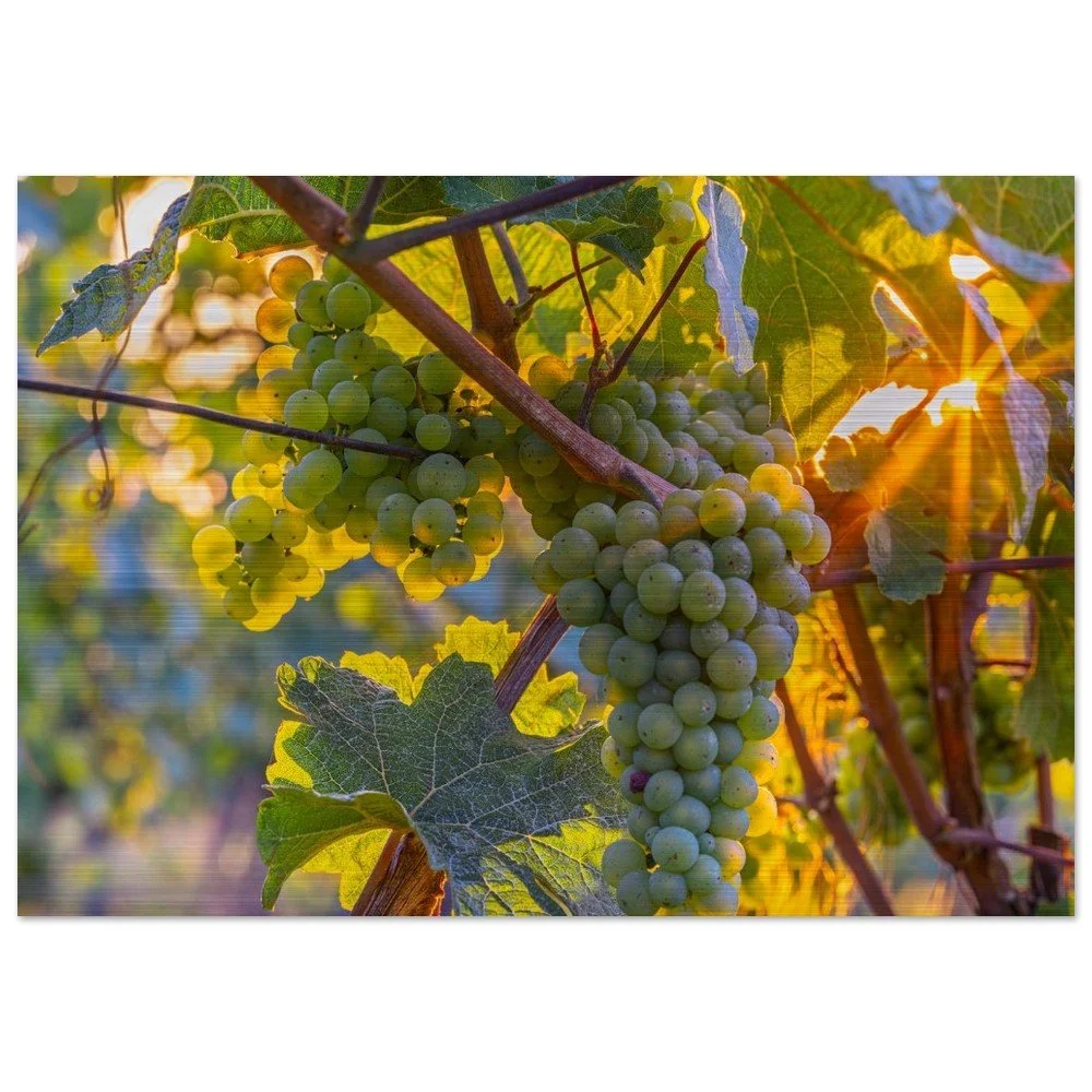 Vineyard Sunset Aluminum Print – Textured Silver Finish, Ripe Green Grapes Art