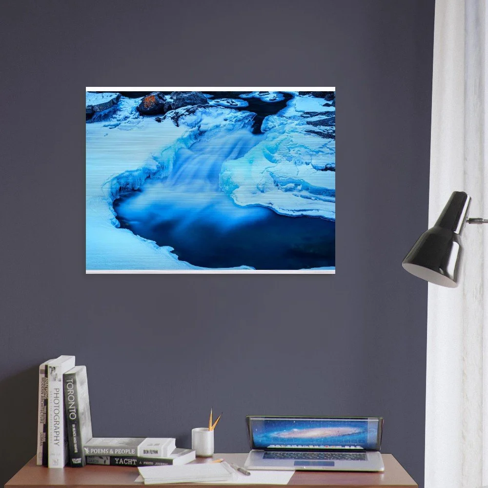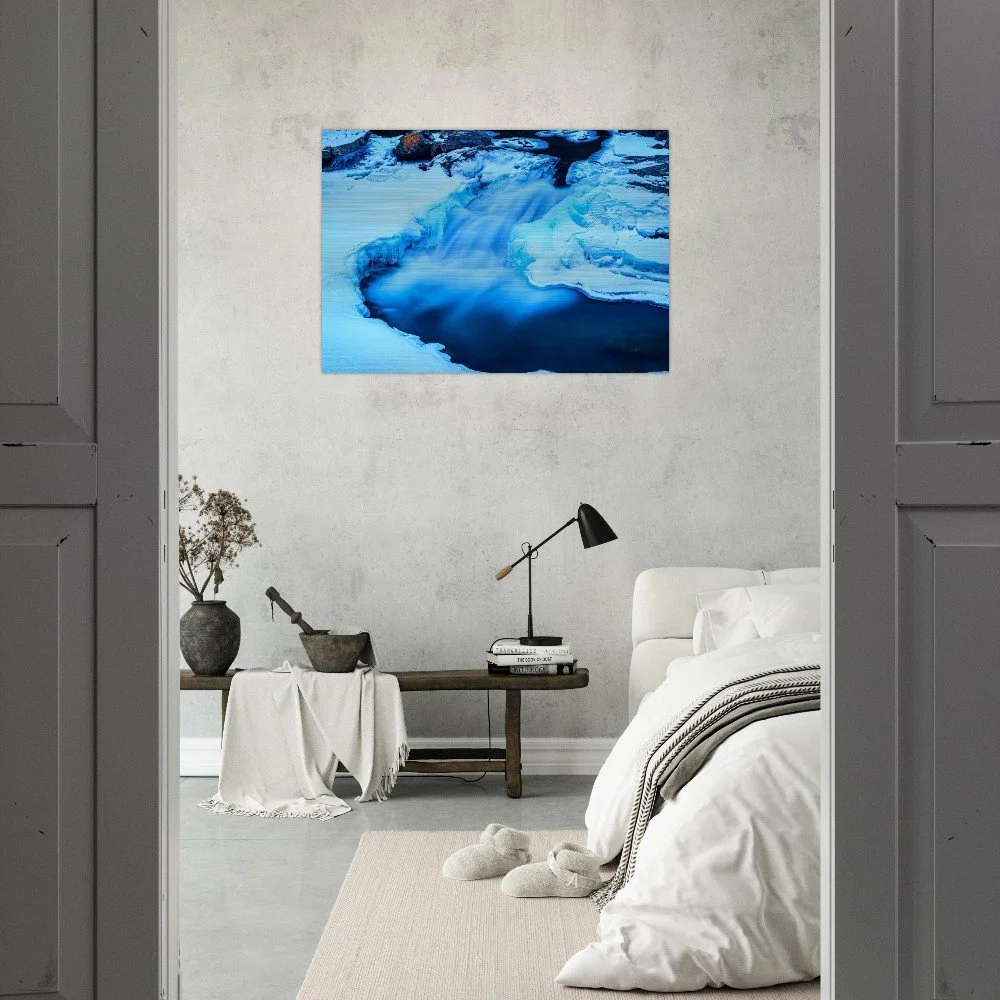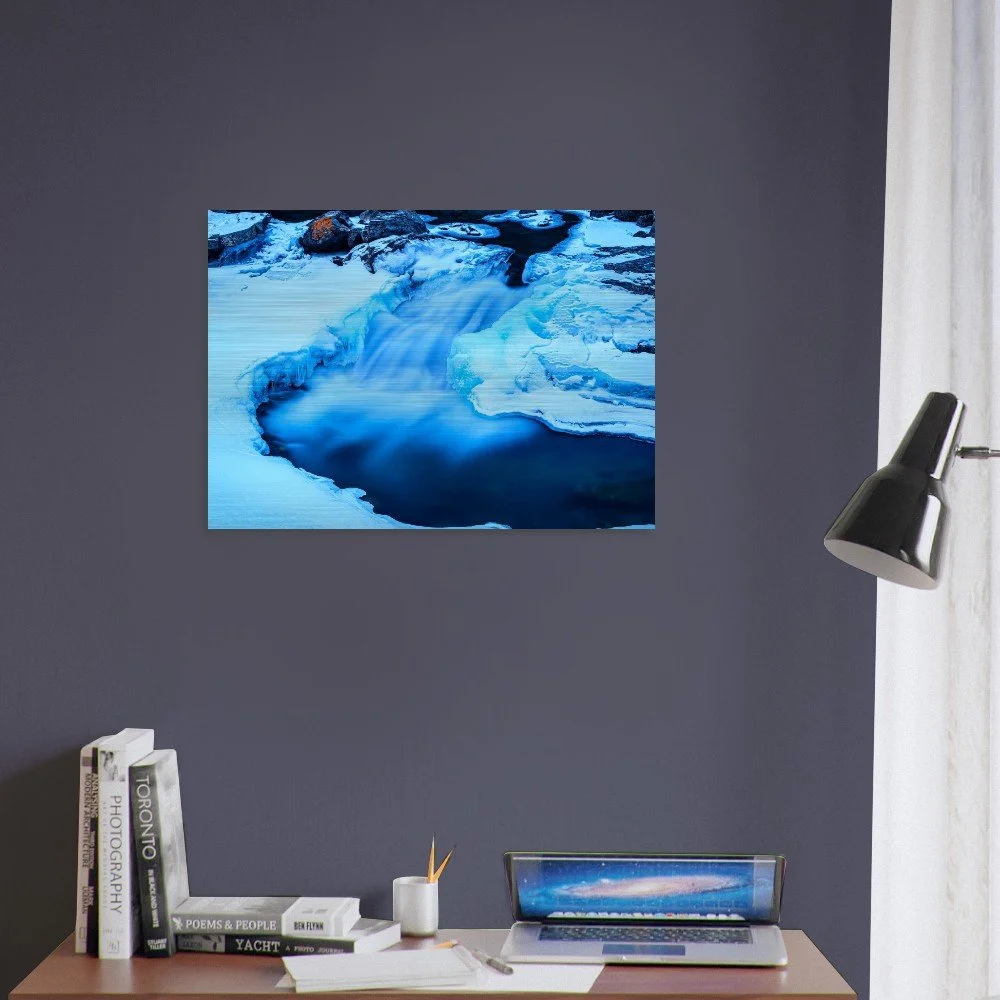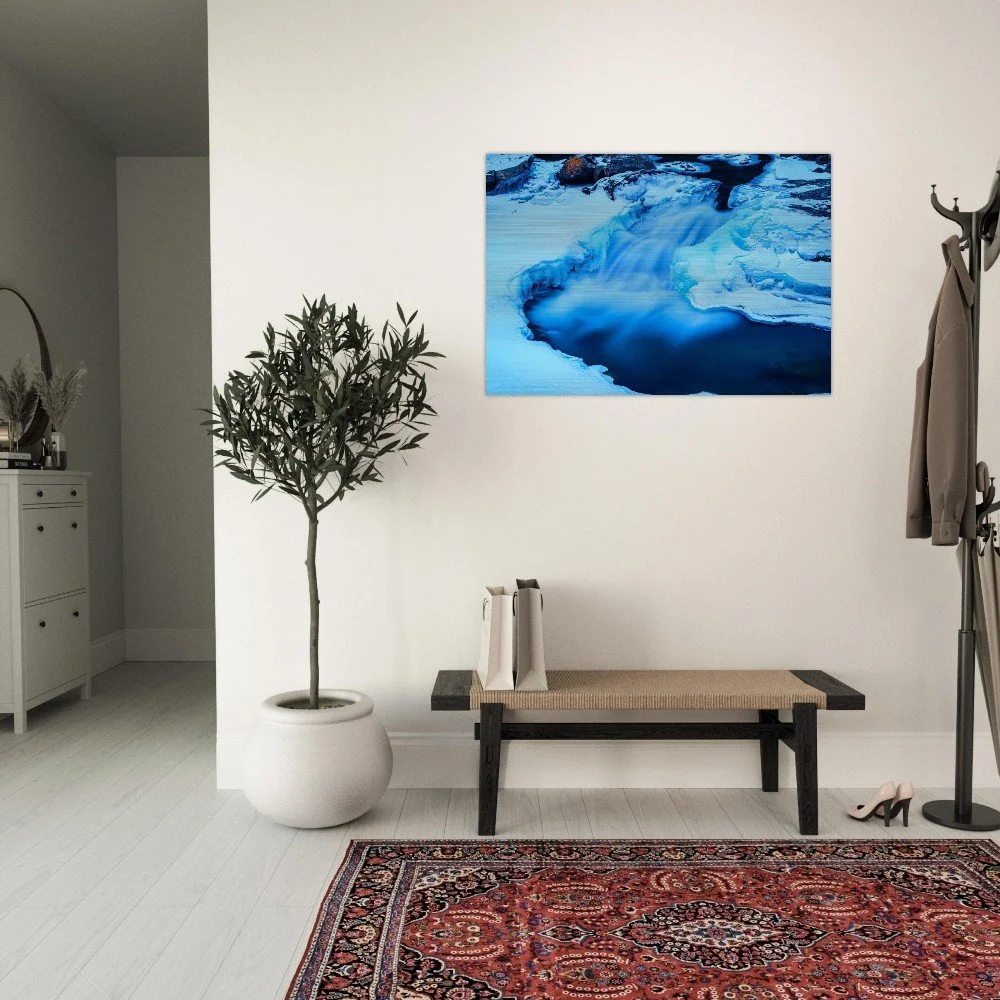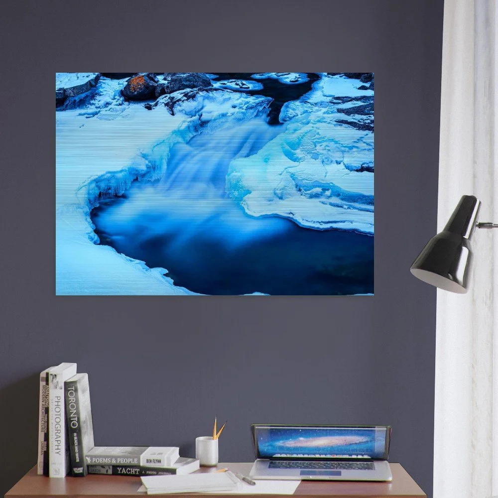 Winter Waterfall on Brushed Aluminum – Stunning Deep Blue Prints